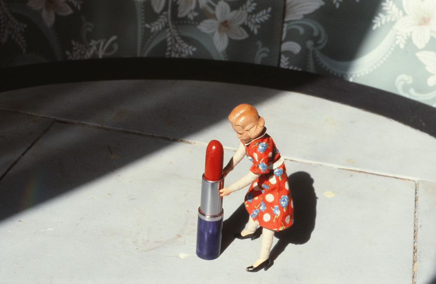 I was going to an antique fair in New York and it was the end of day on a Sunday, and I saw those boxes and it was like electricity coursed through my body, I had to shoot them. The guy hadn’t sold them by the end of the show and I said ‘I would really love to photograph them, can I pay you, can I rent them?’ And he dropped them off at my studio and I thought how can I interrupt these, how can I make them my own. I started bringing my own characters to them; I had my little blue man doll, who was the companion to the pink doll that I used. The boxes were probably made in the 40s or 50s, I put my blue doll in and I decided that he would be Ardis Vinkler, and I had him staring at women like an artist or photographer, and I would put all kinds of parties inside. I used it as my set. It satisfied the desire to interrupt and own someone else’s artwork — which I think is a very common feeling for an artist.
